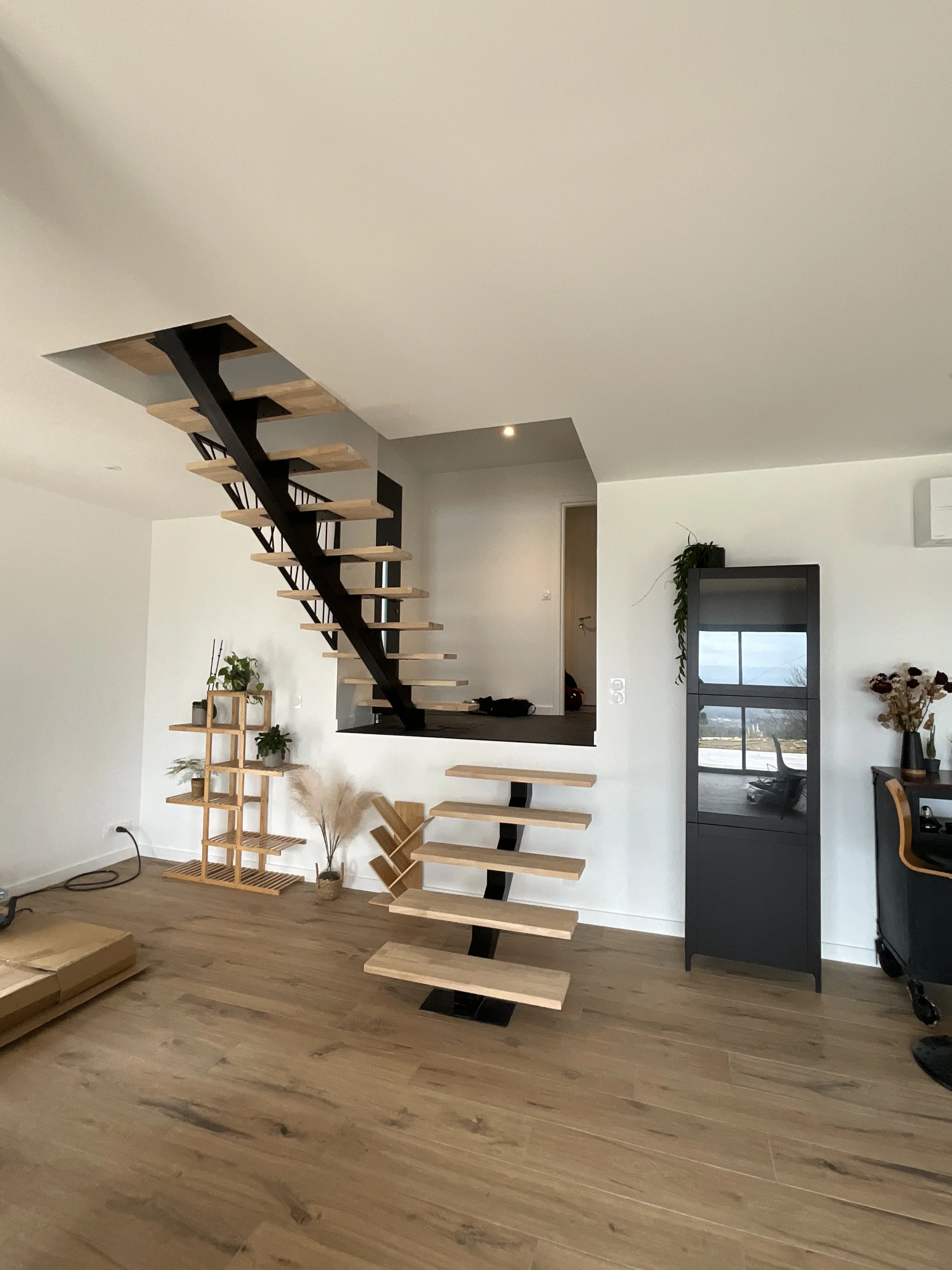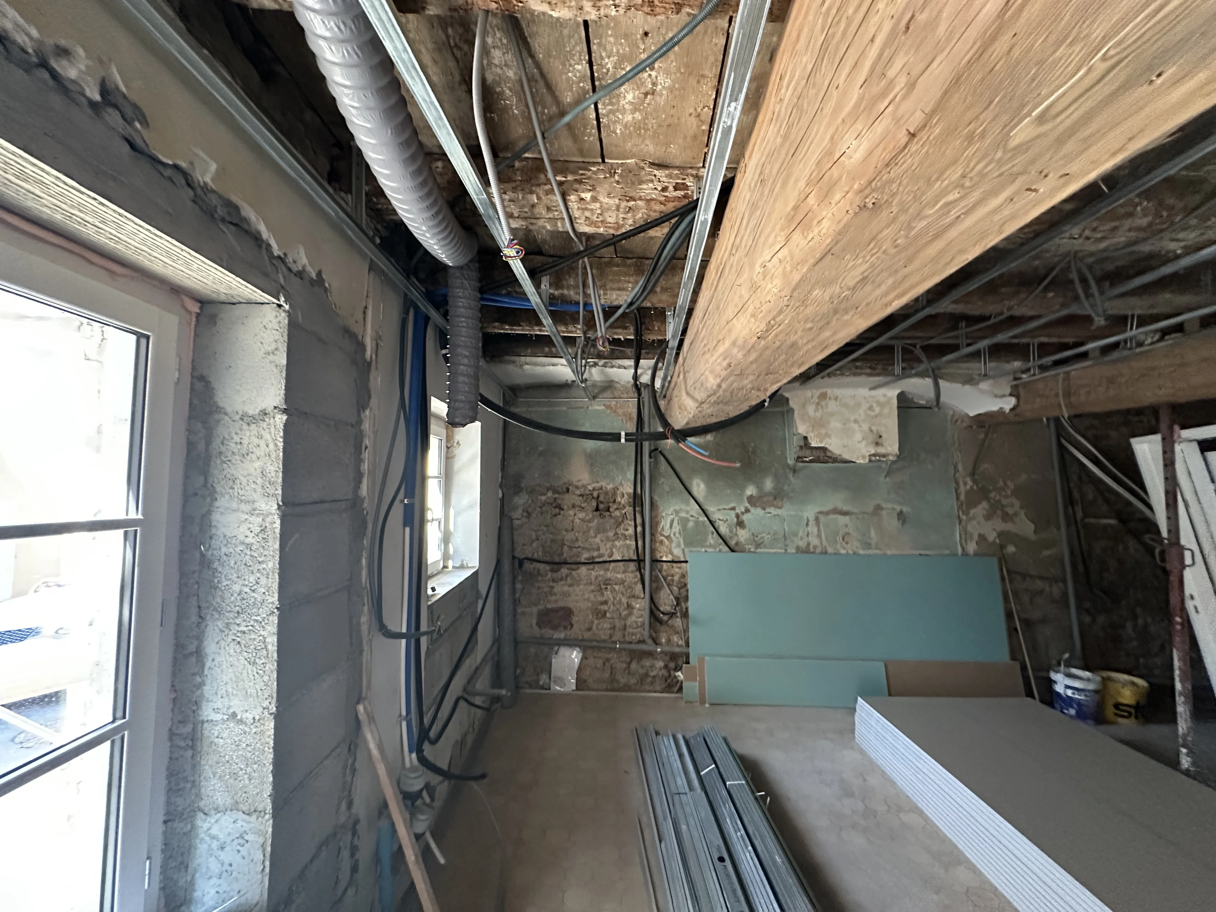 Rénovation intégrale d'une maison ancienne transformée en 2 appartements indépendants. Le projet a nécessité un curage complet de l'intérieur pour repenser entièrement l'agencement des espaces. Située dans le centre historique d'un village, cette rénovation a présenté des défis majeurs.